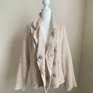 CAbi Cream woven The Estate Chenille Double Breasted jacket moto SMALL