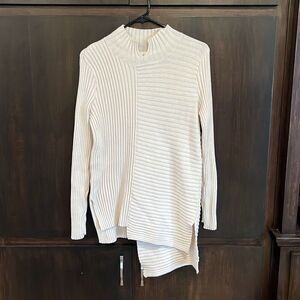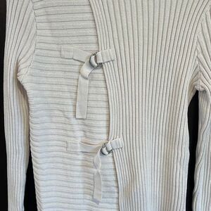 This sweater is made by Cabi. It’s a cream multi ribbed with cute D-ring detail on the back. Size small and in very nice pre owned condition. Smoke and pet free home.
