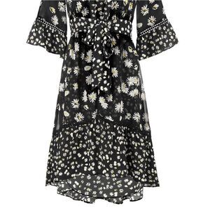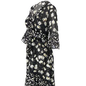 CAbi Daisy Print 2 Piece Dress/Topper/Duster Black & White M Limited-Edition