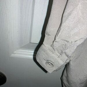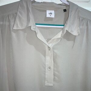 CAbi Dove Grey Silk Popover half button Blouse Sz XL Style# 3424 button cuffs