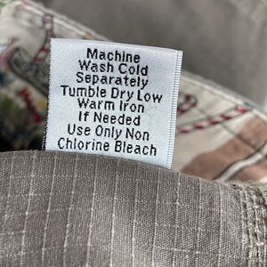 These pants are both cute and rugged, and loaded with style! They measure 16" at waist, 10" rise, and inseam is 23". In very good pre-owned condition. Normal wear and tear noted, but no flaws or damage. Please review pictures and feel free to ask any questions or for more pictures prior to purchasing.