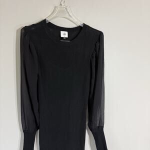 CAbi Duet Dress #4455 Size XS Black Bodycon Sheer Ballon Sleeves Stretchy New