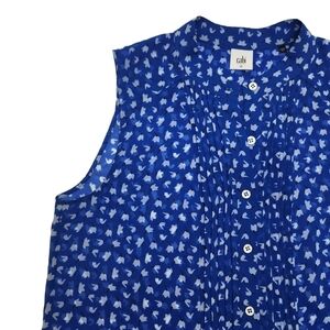 CAbi Electric Blue Sleeveless Peplum Top Sheer Mod Flower Pattern, Size Medium