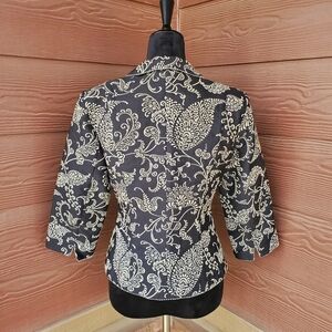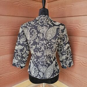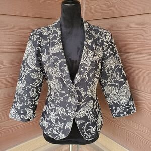 CAbi Eliza Tapestry Brocade Embroidered Black and Cream Jacket Blazer Size 2 EUC