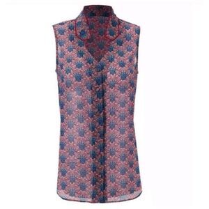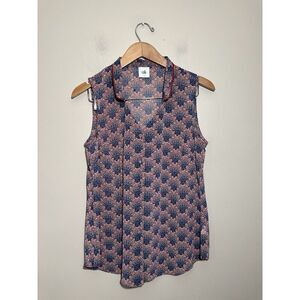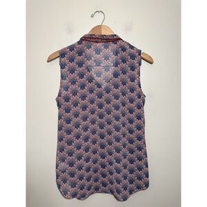 CAbi Fan Bring Sleeveless Blouse Red Blue Sheer Top Foral‎ Button Up 3620 Small