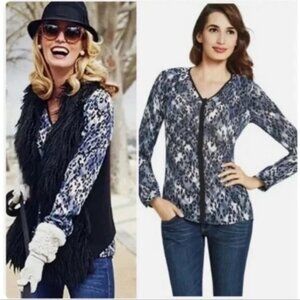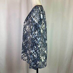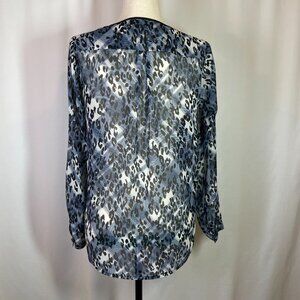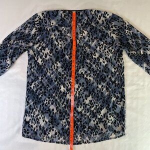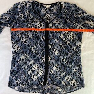 CAbi Fatale Blouse Style 977 Blue Black Leopard Print Long Sleeves Size XS