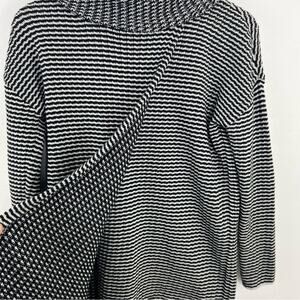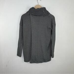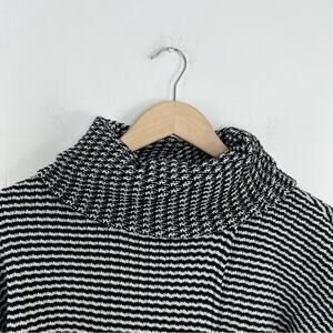 CAbi Black Striped Split Turtleneck Cowl Neck Sweater