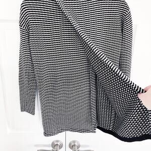 Chunky knit sweater with split open front and back. Cowl turtleneck.