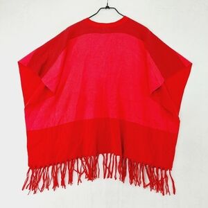 CAbi Firebrick Red Fringe Lightweight Cozy Poncho with Pockets P3115