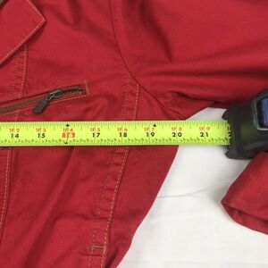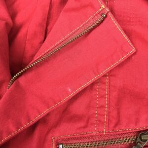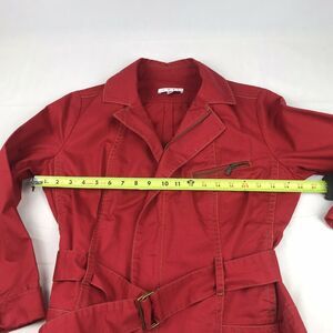 CAbi First Mate Jacket #401 Red Belted Zipper Front Moto Medium. Condition is Pre-owned. Few stain see up close photo for detail. Questions please ask before purchase