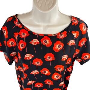 CAbi Flanders Poppy Split Back Top in Fiery Red and Black Style 3251 Size XS