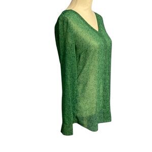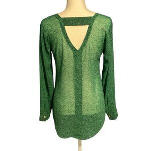 CAbi Floral Chic Sheer V-Neck Long Sleeve Tunic Blouse Green Navy Blue Size XS
