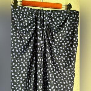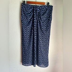 CAbi Floral Island Navy and Lavender Floral Mesh Draped Pull On Midi Skirt M