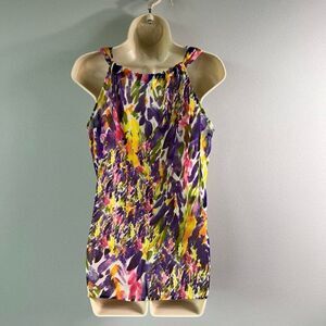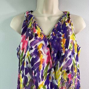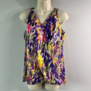 CAbi Floral Petals Sleeveless Blouse Faux Wrap Multi-Color Size - Small Smoke Free Home