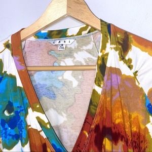CAbi Floral TOP Women Size Small Wrap Ruched Side Watercolors *