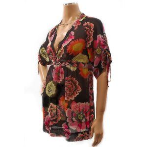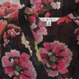 CAbi Gemini #400 Black & Floral Semi-Sheer Top