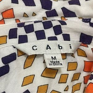 CAbi Geometric Print 3/4 Roll Tab Sleeve Button-Up Blouse Collar - Size M