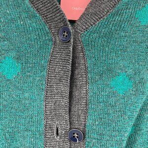 CAbi Gray & Green Cotton Cardigan | Cozy V-Neck Design