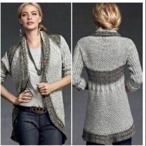 CAbi Gray Shadow Circle 100% Cotton Crochet Knit Bohemian Open Front Cardigan XS