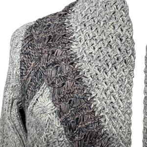 CAbi Gray Shadow Circle Chunky Knit Cardigan Women XS Color Blocked Shawl Collar