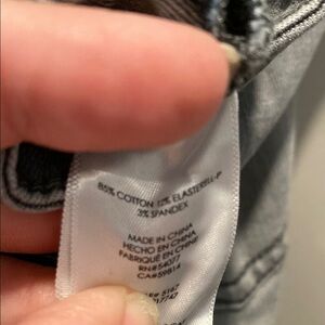 CAbi gray skinny jeans in size 4 with vintage-style distressing and chic zipper accents (non-functional pockets).