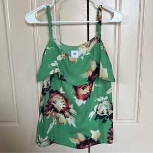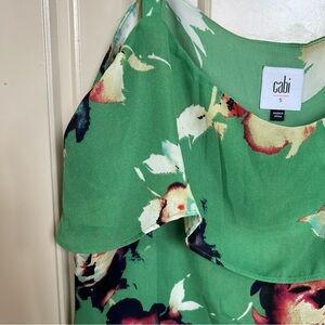 CAbi Green Floral Bloom Cami Spaghetti Strap Blouse Size Small