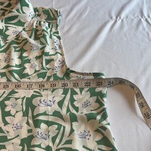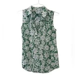 Chic sleeveless blouse with floral design. Button-up front. Ideal for casual or office wear.