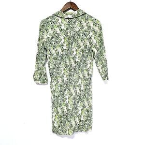CAbi Green/ White Leaf Print Tropical Faux Wrap Dress V-Neck Long Sleeve Size XS