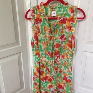 This chic ruffled mini dress by CAbi showcases a delightful blend of green and pink hues, perfect for adding a pop of color to your wardrobe. Its playful design and flattering cut make it an ideal choice for casual outings or special occasions. Embrace the vibrant style and enjoy the comfort of this standout piece.