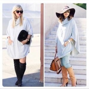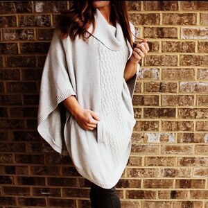 CAbi Light Grey Cowl Neck Knit Poncho/Sweater/Cape #3003 w/Front Pocket Pouch