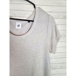 CAbi Hangout Peplum Short Sleeve Tee in Heathered Oatmeal, sz Small