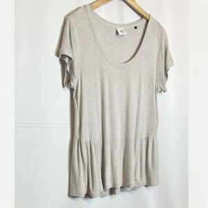 CAbi | Hangout Tee Peplum Top Short Sleeve Heathered Oatmeal