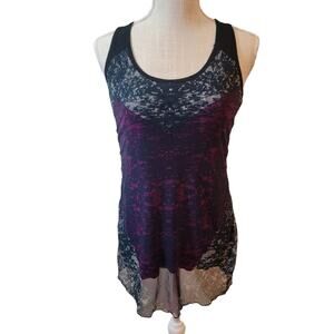 CAbi Heart of Love Purple Black Mesh Tunic Tank Top Size Medium
