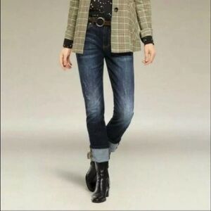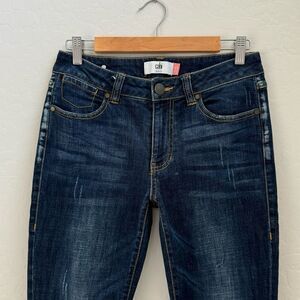 CAbi High Straight Jeans Distressed Dark Wash High Waist 4 Style #3561