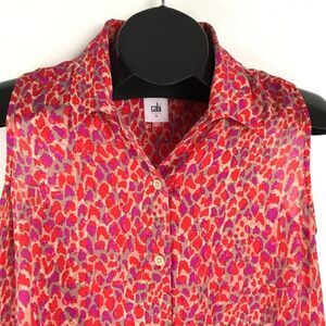 CAbi High-Low Chiffon Tank Women's Size Small Semi-Sheer Sleeveless Button Front