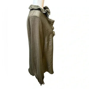 CAbi Icon Blouse Long Sleeve Ruffle Button Down Size S Olive Green