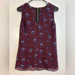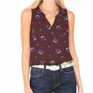 CAbi Icy Floral Burgundy Sleeveless V-neck Flowy Blouse/Tank Size XS