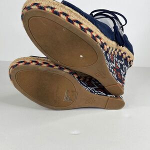 CAbi Isla Espadrille Ankle Wrap Tassel Bohemian Wedge Sandals Navy Blue Preowned