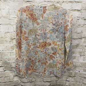 CAbi Womens Small Ivory Floral Silk Tie Neck Sheer Beaded Top in excellent used condition. No stains, tears or rips.