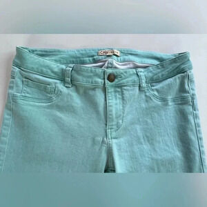 CAbi DENIM, ladies jeans. 3- pockets, 2- faux pockets on the front. Belt loops. 1- button, zippered fly. Stretchy. Comfortable. Low rise. Beautiful color. Like new condition. Great CAbi quality.
