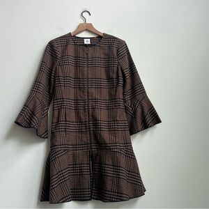 CAbi Jacket Women Flounce 3902 Brown Tartan Plaid Bell Sleeve Academia Preppy XS