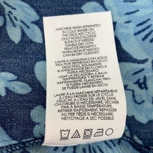 Cabi Java blue floral drawstring waist dress EUC XS. Cute shirt hem with pockets and button front. See photos for approx measurements.