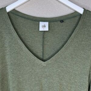 CAbi Knot Front Long Sleeve Rayon Blend Reveal Tee 3623 Sage Green Size L