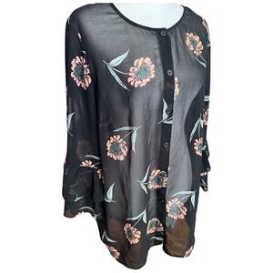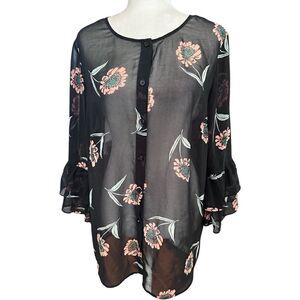 CAbi La Di Da Button Up Blouse w/ Bell Tiered Sleeves Size Large