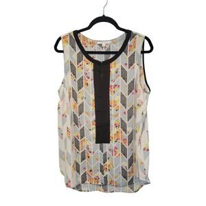 CAbi Large Grosgrain Ribbon Geometric Floral Print Sleeveless Blouse Career Art