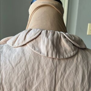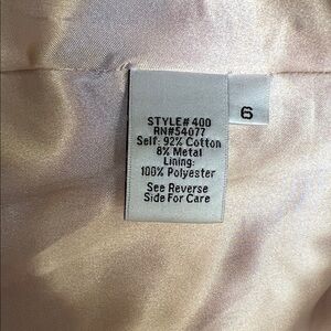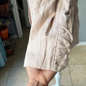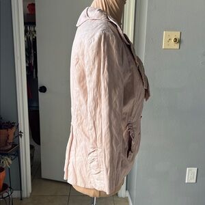 Great Condition.Fully lined CAbi brand blush pink scalloped petal jacket. This blazer has scallops around the front and a cool ruffle crinkle texture throughout. 3/4 sleeves. Buttons down the front. it adds a touch of sophistication to your wardrobe.