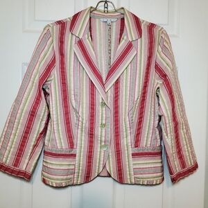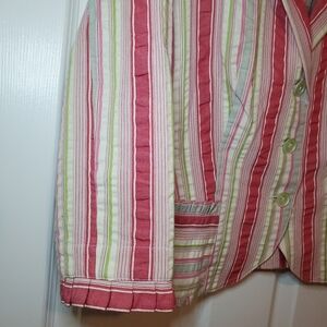 CAbi Lightweight Seersucker Striped Shabby Chic Ruffled Bistro Blazer Jacket 4