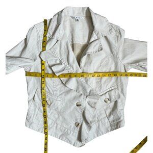 ✨ CAbi Linen Ruffle Jacket #325 Beige Oatmeal Blazer Size Medium