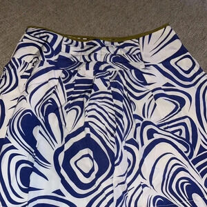 CAbi Lombard Blue White Abstract Print Pleated Midi Lined Skirt