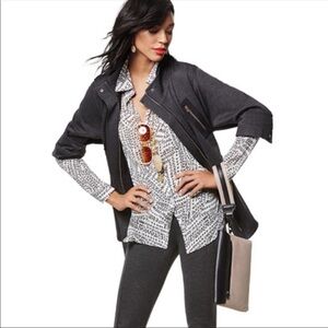 Details: MeshBack Jacket made of ponte twill , adjustable buckle strap for figure defining style. A contrasting mesh arch accents the back for added eye appeal. Zip closure. Adjustable buckle strap. Chest pockets are not full pockets 75% rayon 22% nylon 3% spandex. Lining 95% rayon 5% spandex